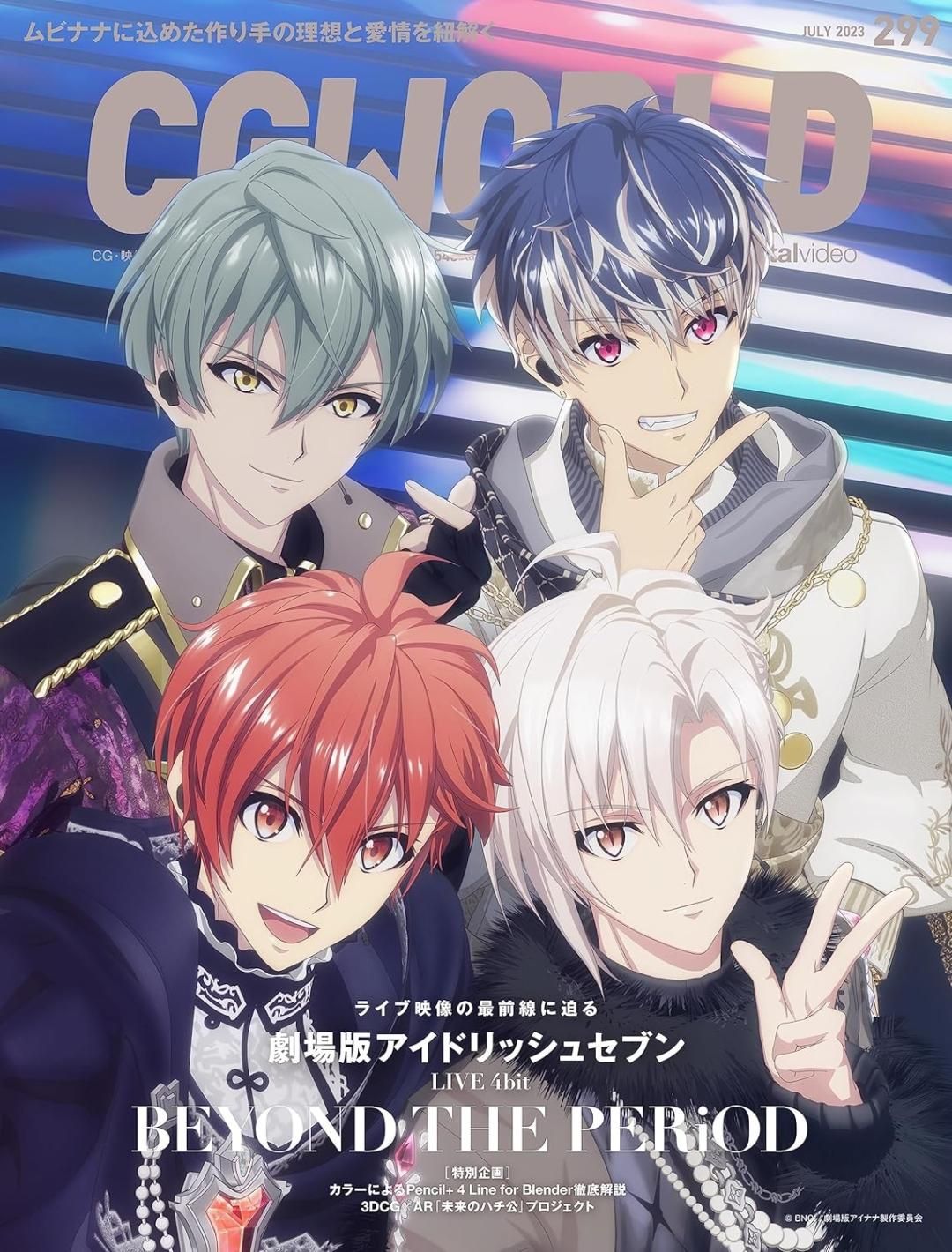 今回の特集は、『劇場版アイドリッシュセブン LIVE 4bit BEYOND THE PERiOD』。4グループ16人のアイドルが一堂に介し森羅万象をテーマに歌い上げる壮大なステージについて、その作り手への取材を通してライブ映像の最前線を紹介する。表紙は七瀬 陸(IDOLiSH7)、九条 天(TRIGGER)、百(Re:vale)、亥清 悠(ZOOL)の撮り下ろし! 特集はエグゼクティブプロデューサーの下岡聡吉氏や統括プロデューサーの根岸綾香氏をはじとしたプロデューサー陣へのインタビューと錦織 博&山本健介両監督へのインタビューから始まり、最大200台のカメラを駆使したプリビズ、本ライブ用に描き下ろされたスクリーン背景&映像、レインボーアリーナを埋め尽くす観客、各楽曲のステージを彩るライティング&レンダリング、5社5人の撮影監督による撮影処理と、こだわりのポイントを余すところなくお伝えする。