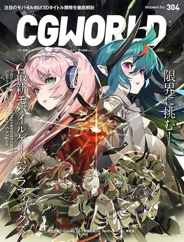 CGWORLD vol.304(2023年11月10日発売)の特集は「限界に挑む! 最新モバイルゲームグラフィックス」。ハードウェアやゲームエンジンの進化により、モバイル向け3Dアプリのグラフィックスは驚異的な速度で表現の幅を広げている。本特集では、アカツキゲームスのプロトタイプ開発プロジェクト『プロジェクト暁』をはじめ、メイキングや各社TAの座談会などを通し、モバイル向け3Dアプリのグラフィックスにおける最新技術トレンドと各社の挑戦を追う。