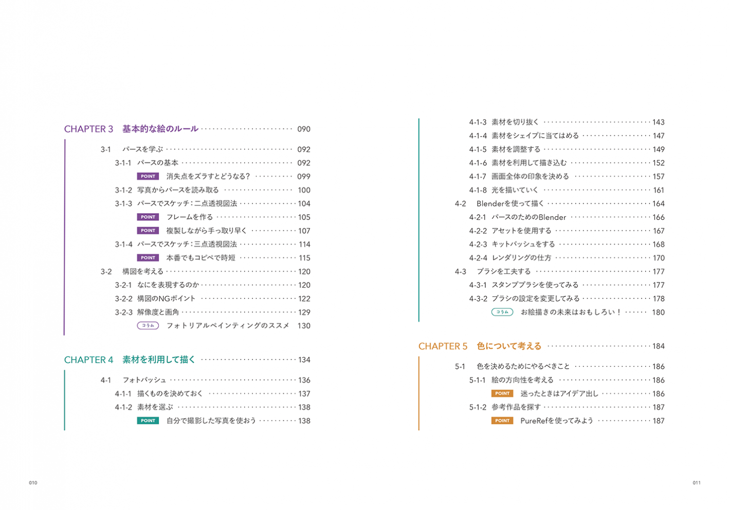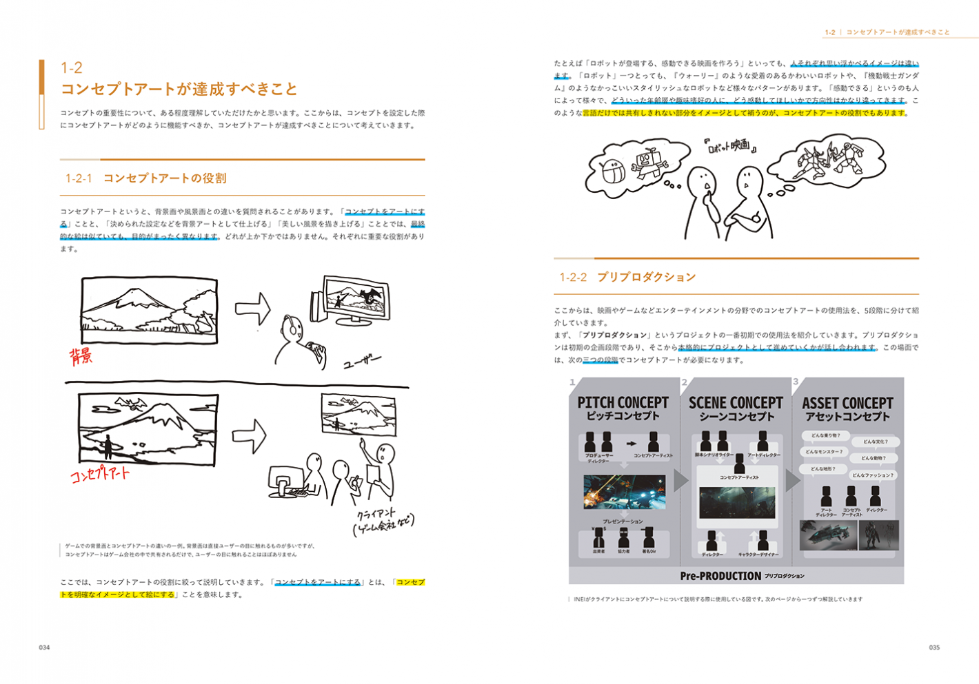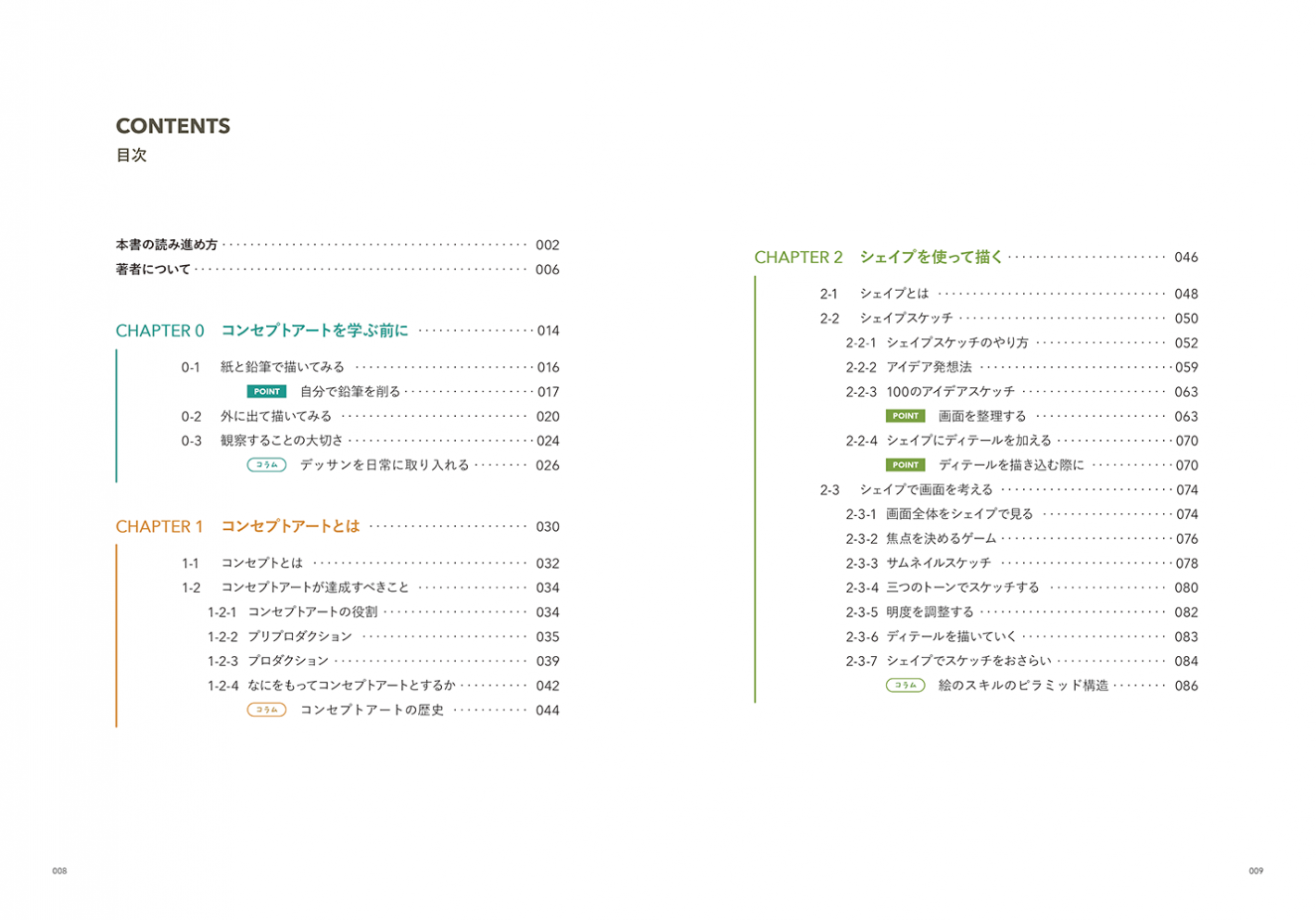 「そもそもコンセプトアートって?」というところから、感動を引き出すシェイプの捉え方、アイデアの出し方、パースや構図の実践、フォトバッシュやキットバッシュなど素材の利用法、作品の印象を左右する色の選び方、ストーリーを伝える視線誘導など、INEIが築き上げてきた、“世界観”や“雰囲気”をアートで魅せる方法をまとめています。