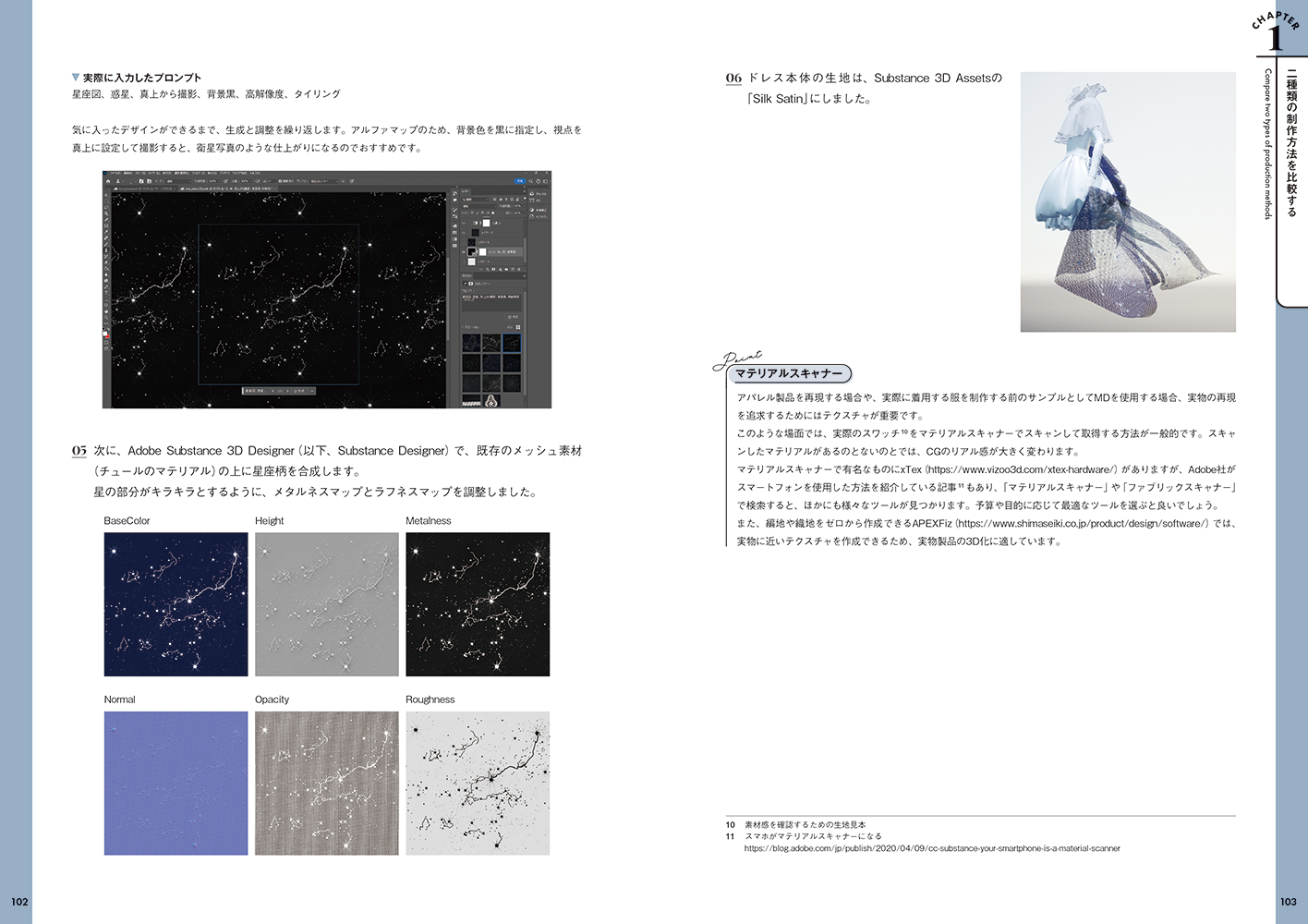 前半では、フォトリアルとデフォルメの2つのアプローチで、ドレスと和装の制作プロセスを解説します。