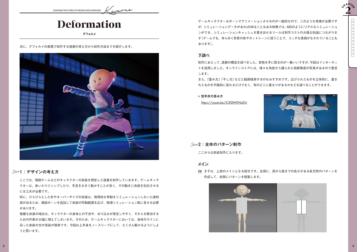 後半では、ゲームの世界観を意識したメンズ衣装を例に、アパレル業界とCG業界をつなぐワークフローや、Marvelous Designer公式コンテストの受賞作品メイキングなど、実践的な内容を収録しています。