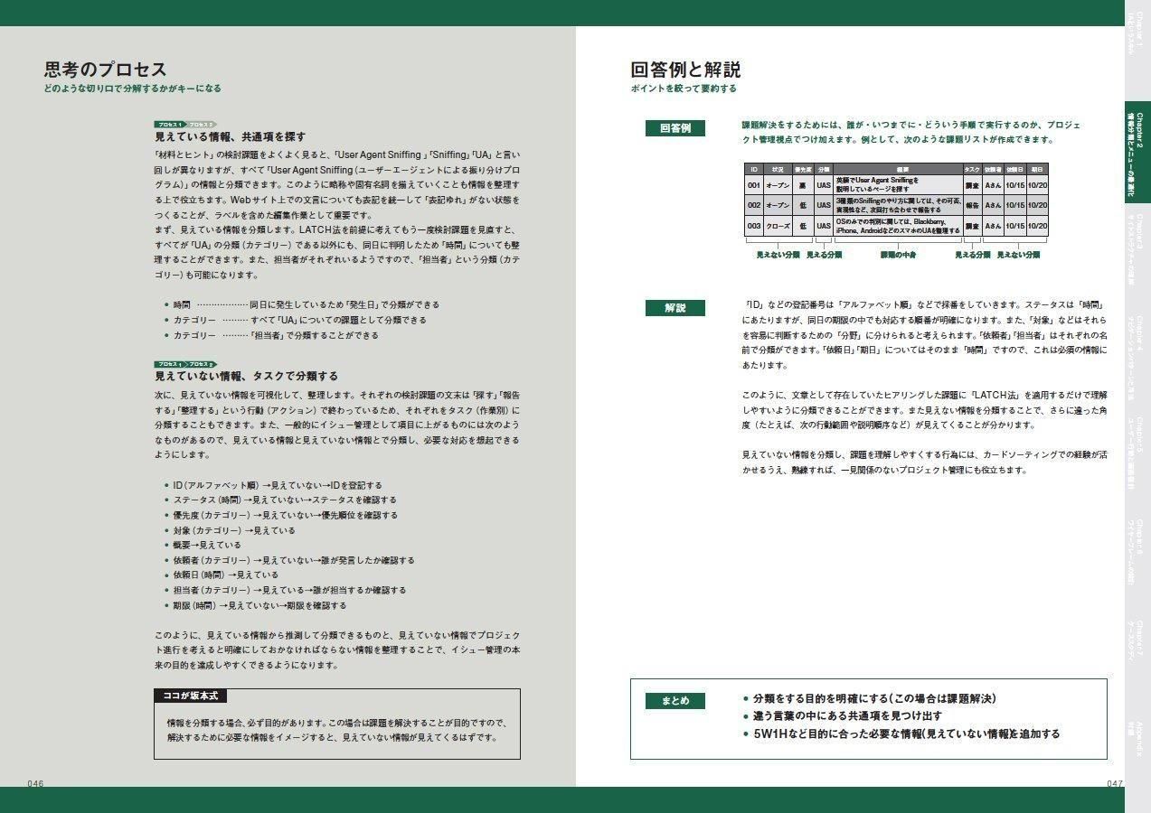本書では、実務や人材育成の現場、数々の勉強会を通じて著者が得た知見をもとに、仕事に活かせるIA=情報アーキテクチャ本としてまとめました。抽象的なIAの考え方を可視化するために、基礎的な知識の紹介に加えて、想定した設問に著者が思考・回答していくアプローチを紙上で展開しており、IAの考え方を追体験できるようになっています。